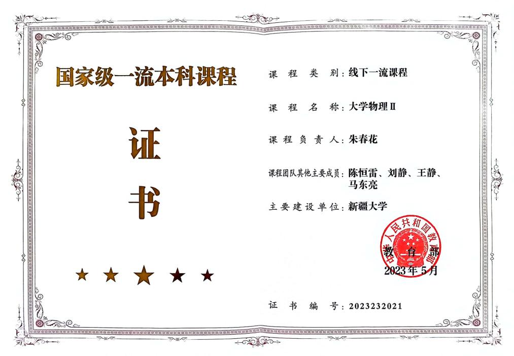 大学物理(自治区课程思政示范课程):朱春花、陈恒雷、李鹏、刘静、王静、马东亮、阿里根·吐尔艾合买提、吴钊峰