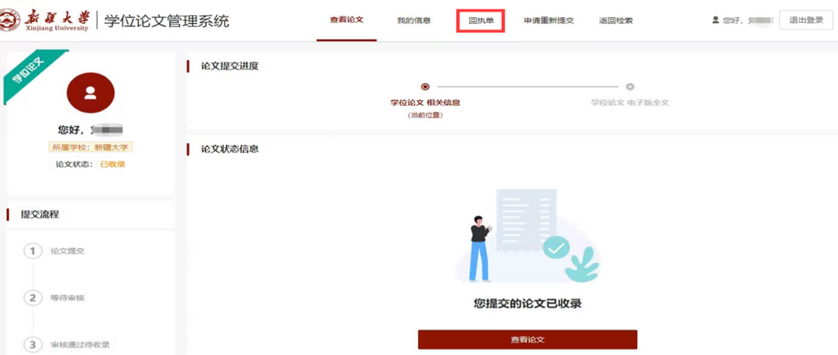 第五步:查看回执单