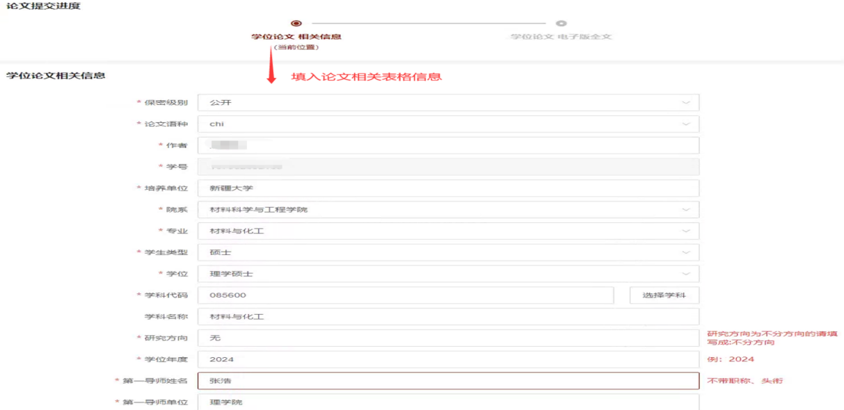 2.提交内容如题名、研究方向、关键词、 文摘等应与纸本论文保持一致,否则会导致审核不合格。