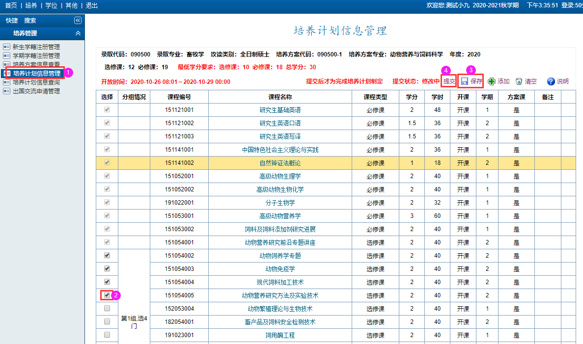2.培养计划制定完毕先保存,确定不需修改,点击“