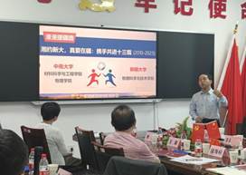 会议围绕基层党建、干部教师援疆、公司产品、科学研究、人才培养等多个主题开展了深入而广泛的交流。中南大学援疆干部、学院副经理欧阳方平教授作了“湘约新大、携手共进13年—共创辉煌、未来可期”报告,回顾了13年来中南大学组团式包建物理学科和材料学科的对口援疆工作成绩与成效,yl6776永利集团官网物理科学与材料团队建设获得长足发展:派出了多名实干担当的干部和教师在一线对口支援工作,成功申报物理学一级学科博士点和国家级一流建设专业,完成材料科学与工程本科专业的建设,成功申报自治区重点实验室、自治区创新团队、自治区重点项目,加快人才队伍、教学科研平台、一流专业、一流课程和基层党支部红色堡垒的建设。双方期望在团队培养、人才队伍建设、科学研究、一流专业建设等方面取得更大进步,获得重大标志性成果。