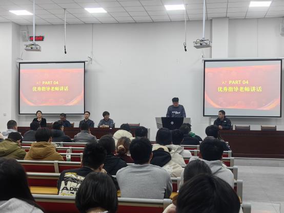 物理学22级员工刘梦远同学作为员工代表分享参赛心得,通过刘梦远同学的发言让员工们明白,成功不是偶然,而是无数个日夜坚持与奋斗的结果。感谢导师团队的全周期指导及学院资源支持,呼吁2025年参赛同学“敢于挑战前沿课题,践行科学家精神”。物理学院吉旭老师作为指导教师代表向参会师生作指导经验分享,主要从选题到定题再到实验方案的修改的、团队队员的分工、遇到困难处理的方式方法等各方面各环节做了详细的讲解。提出“三阶培养法”(基础夯实→创新孵化→实战打磨)的指导经验,分享跨学科指导案例,承诺将继续为2025年参赛团队提供全方位支持。