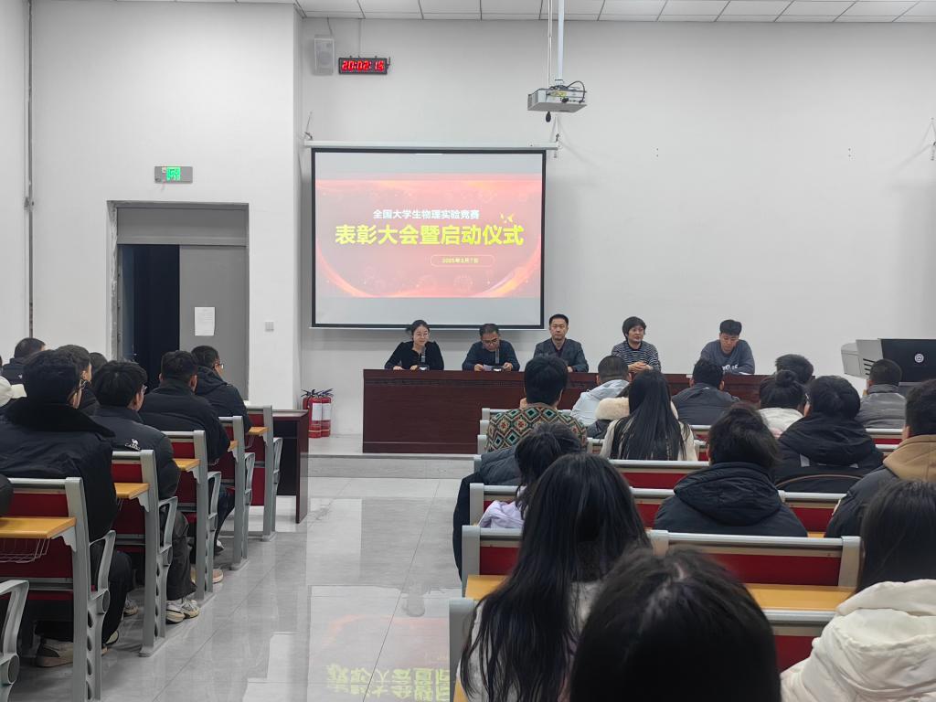 2025年3月7日晚上,2024年新疆老员工物理实验竞赛国奖颁奖典礼暨2025年老员工物理实验竞赛专题培训在6776永利集团B102会议室举行。来自yl6776永利集团官网各学院的一百余名师生代表参加了本次颁奖典礼。颁奖典礼及开幕式由物理学院李鹏经理和副经理陈恒雷出席,谢雪芳老师主持。