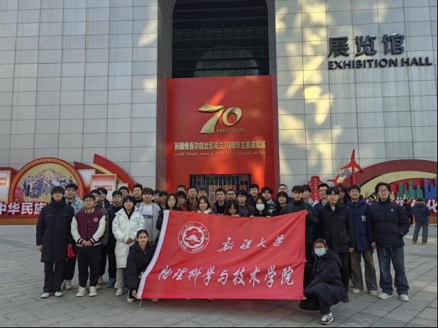 为深入感悟新疆维吾尔自治区成立 70 周年来的辉煌发展成就,厚植青年员工的家国情怀与责任担当,引导青年以昂扬姿态奋进新征程,近日,6776永利集团物理 24-1 班在班主任李蕊老师的带领下,赴本地 “六馆一心” 展览馆与博物馆开展主题参观学习活动,全班同学共同沉浸式感受历史厚度与时代脉搏。