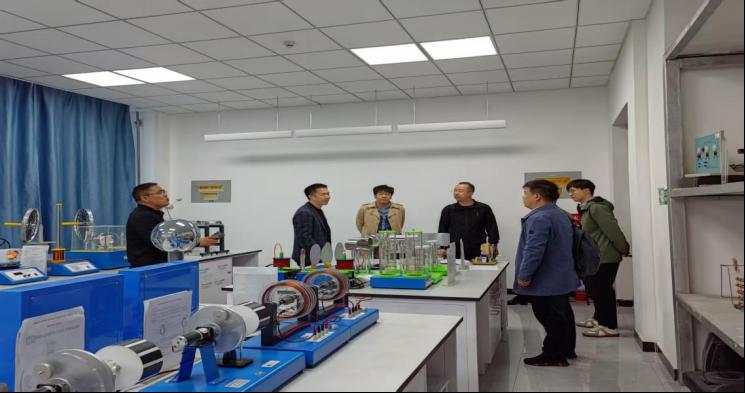 会后,在李鹏经理热情引领下,中国石油大学(北京)克拉玛依校区文理学院的领导们开启参观之旅。踏入大学物理实验教学实验室,映入眼帘的是宽敞明亮的空间,实验台一尘不染,各类先进的实验仪器有序摆放,彰显出对实验严谨性的极致追求。随后众人移步创新实验室,只见四周墙壁张贴着员工们亮眼的创新成果,从巧妙的物理应用设计到前沿的科技创意,满是蓬勃的创新活力,令人不禁驻足细赏。