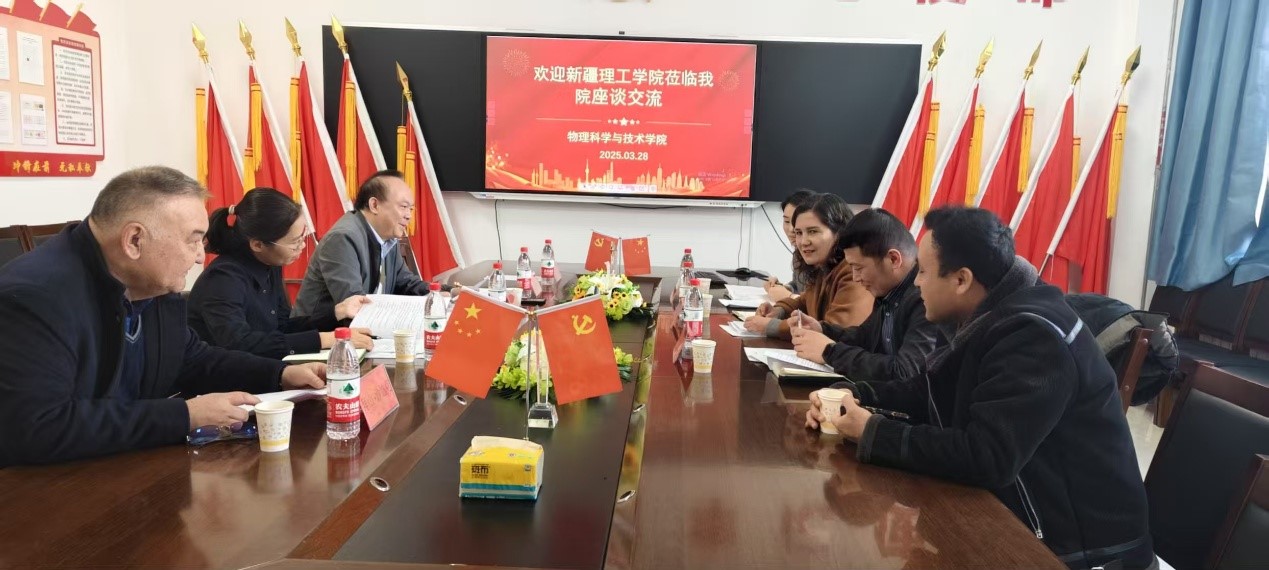 2025年3月28日,新疆理工学院理学院副经理热比古丽·吐尼亚孜、副经理马和平、教师代表张盼老师一行三人赴6776永利集团交流座谈。公司党委书记段海明、党委副书记、纪委书记杨银玲、退休教师代表拜山·沙德克教授参加座谈交流。座谈会由6776永利集团段海明书记主持。