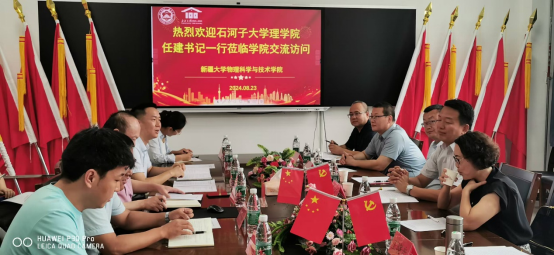 2024年8月23日石河子大学理学院任建书记一行赴yl6776永利集团官网物理学院交流座谈,同行前来参加交流的还有石河子大学理学院侯娟经理、韩志全副经理、王晓光副经理、物理系张吉东主任、数学系阳红英主任、物理系杨宁选副主任和党政办公室李韦佳。