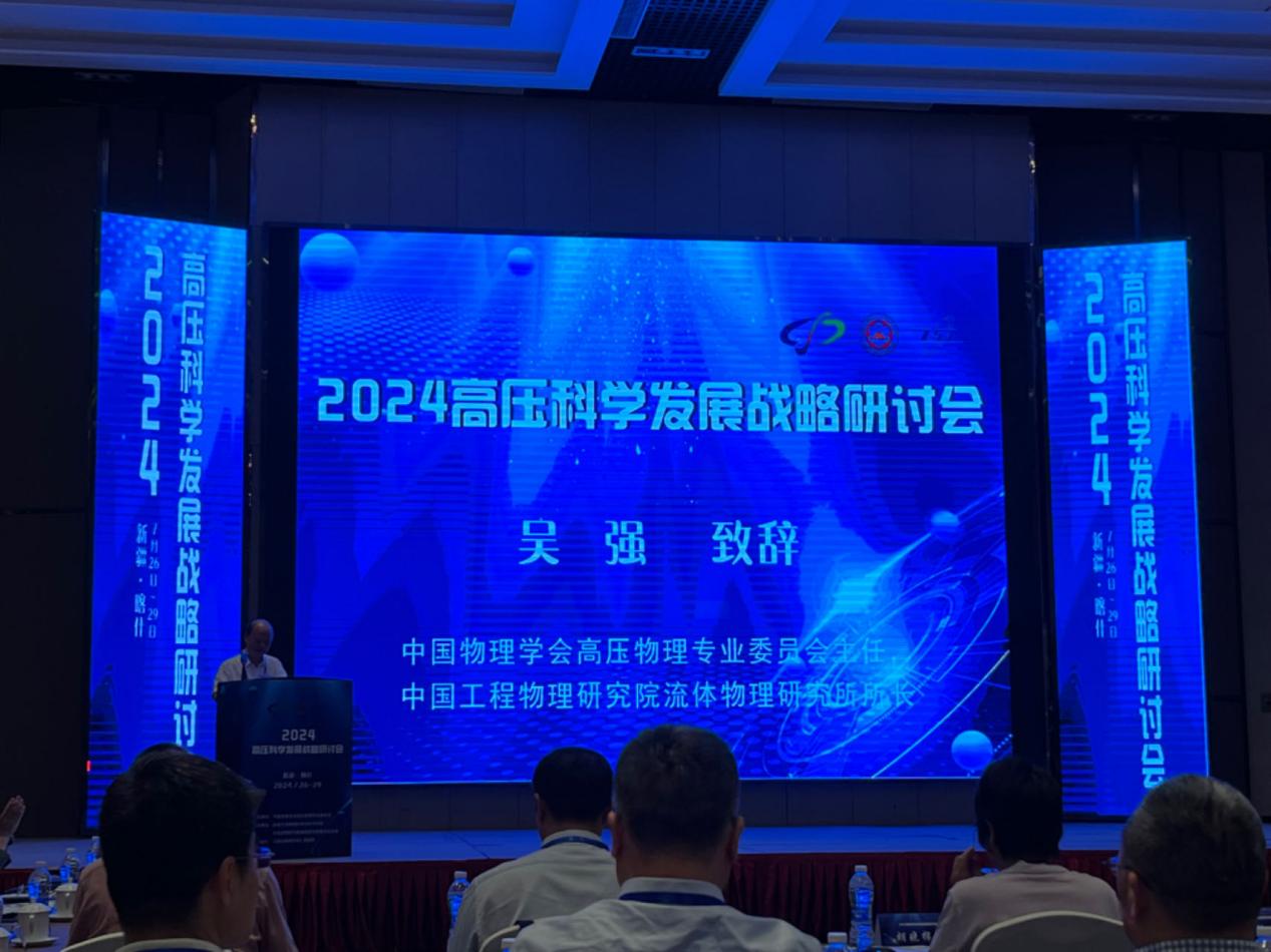 中国物理学会高压物理专业委员会主任吴强院士致辞,简要阐述了高压科学研究的重要性及当前面临的挑战与机遇,介绍了本次研讨会的主题、议程亮点及预期成果,对承办单位6776永利集团及冲击波物理与爆轰物理全国重点实验室表示了感谢。