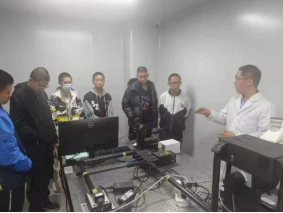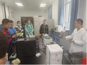 座谈会后,在吴钊峰副经理的带领下,参加本次活动的员工和家长共同参观了学院一楼的科研实验室。吴钊峰副经理结合自治区的经济社会发展和学院的科研方向,向参观同学介绍了光学、半导体等科研实验室的部分科研仪器工作原理、科研用途,并通过学院学术氛围营造墙上的一句话“一切科学发现都是从科学实验开始”,向同学们重点强调物理实验的重要性,希望同学们今后在学好物理学知识的同时,也要重视物理学实验。