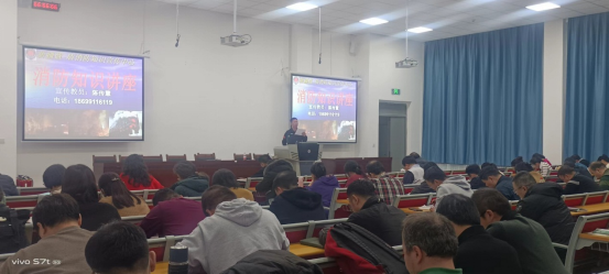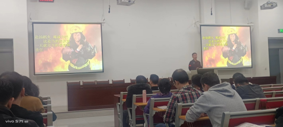 陈传慧宣传教员向全体教工讲解消防知识与相关政策法规,主要内容包括:有关灭火器的使用方法,逃生自救常识,以及一些因为安全意识薄弱而导致的恶性消防事故等等。